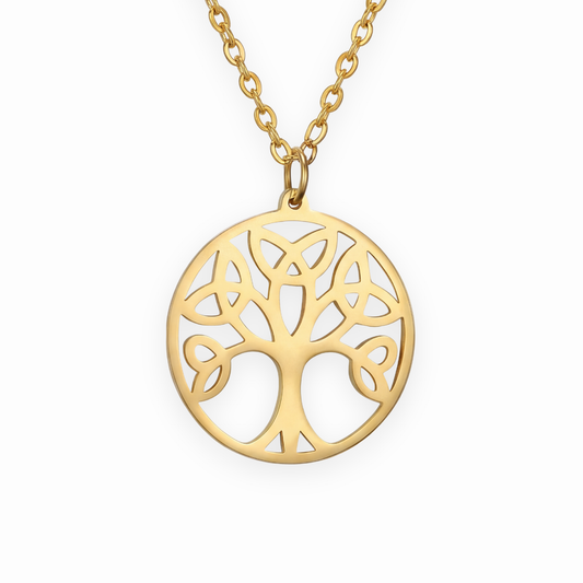 Les médaillons arborent fièrement l'arbre de vie en leur centre. Ces bijoux se déclinent en acier inoxydable, en plaqué or, en or rose ou en cuivre. On trouve par ailleurs des motifs d'arbres gravés ou imprimé sur du silicone.