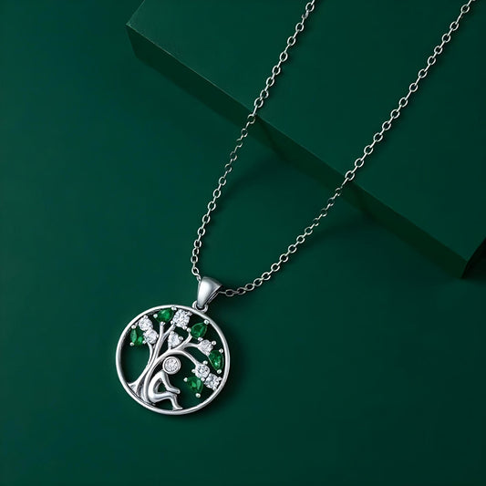 Collier Arbre de Vie Argent - Pierres Vertes et Zircons