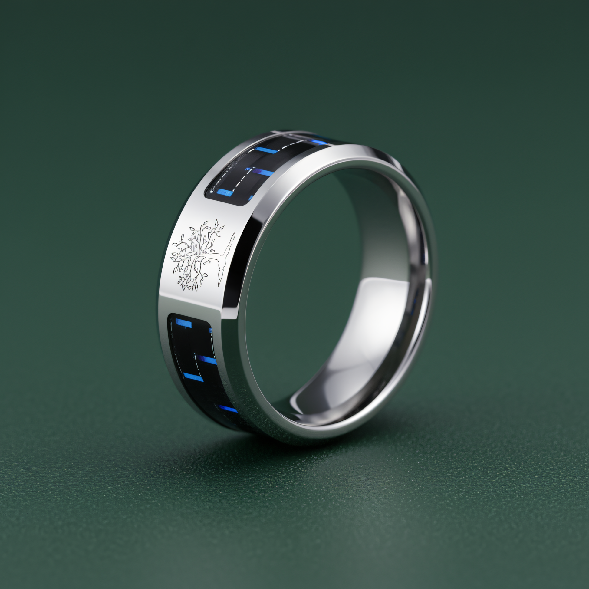 Portez cette bague en fibre de carbone représentant l'arbre de vie, un matériau extrêmement léger et incroyablement solide. La fibre de carbone, trois fois plus légère que le titane, propose une résistance supérieure aux coups et rayures.